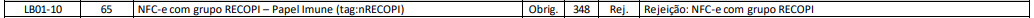 Essa rejeição ocorre quando for emitida uma NFC-e e for informado o grupo RECOPI (Reconhecimento e Controle das Operações com Papel Imune).