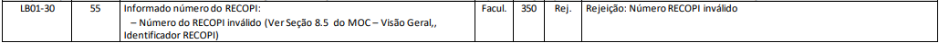 Número do RECOPI inválido (Ver Anexo XII.02, Identificador RECOPI).