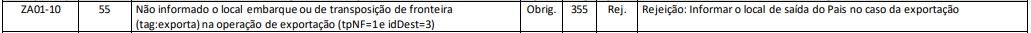 Rejeição 355: Informar o local de saída do Pais no caso da exportação (NF-e)