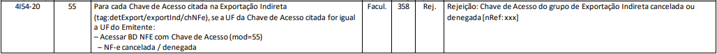 Rejeição 358: Chave de Acesso do grupo de Exportação Indireta cancelada ou denegada (NF-e)