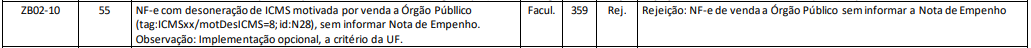 Rejeição 359: NF-e de venda a Órgão Público sem informar a Nota de Empenho (NF-e)