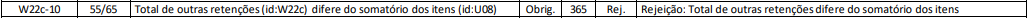 Verificar pois o Total de outras retenções (id:W22c) difere do somatório dos itens (id:U08).