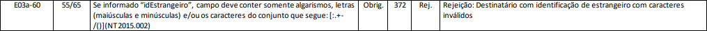 Rejeição 372: Destinatário com identificação de estrangeiro com caracteres inválidos (NFC-e)