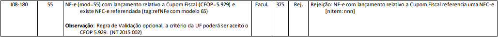 Lembrando que essa regra de validação é opcional, a critério da UF pode ser aceito o CFOP “5.929”.