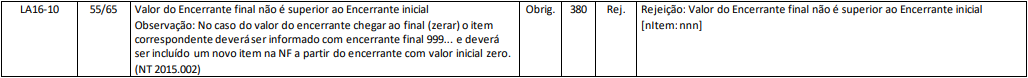 Rejeição 380: Valor do Encerrante final não é superior ao Encerrante inicial (NF-e)