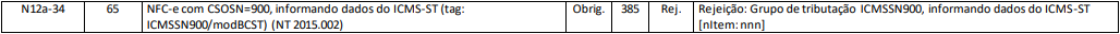 Rejeição 385: Grupo de tributação ICMSSN900, informando dados do ICMS-ST (NFC-e)