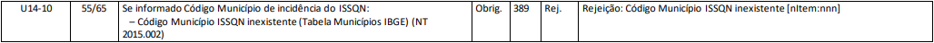 Rejeição 389: Código Município ISSQN inexistente [nItem:nnn] (NF-e)