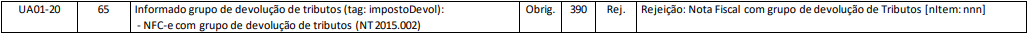 Rejeição 390: Nota Fiscal com grupo de devolução de Tributos (NFC-e)