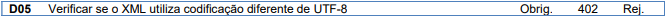 Essa rejeição ocorre quando o XML está com codificação diferente de UTF-8.
