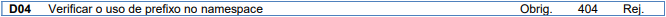 Essa rejeição ocorre quando o uso de prefixo de namespace não é permitido.