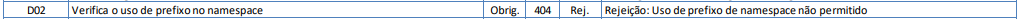 Rejeição 404: Uso de prefixo de namespace não permitido (NF-e)