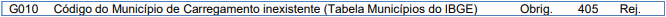 Essa rejeição ocorre quando o Município de Carregamento está inexistente.