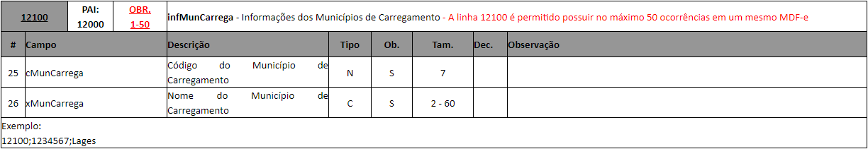 Para clientes que emitem o arquivo em TXT o campo infMunCarrega é referente a linha 12100, conforme podemos visualizar abaixo nos manuais da NDD.
