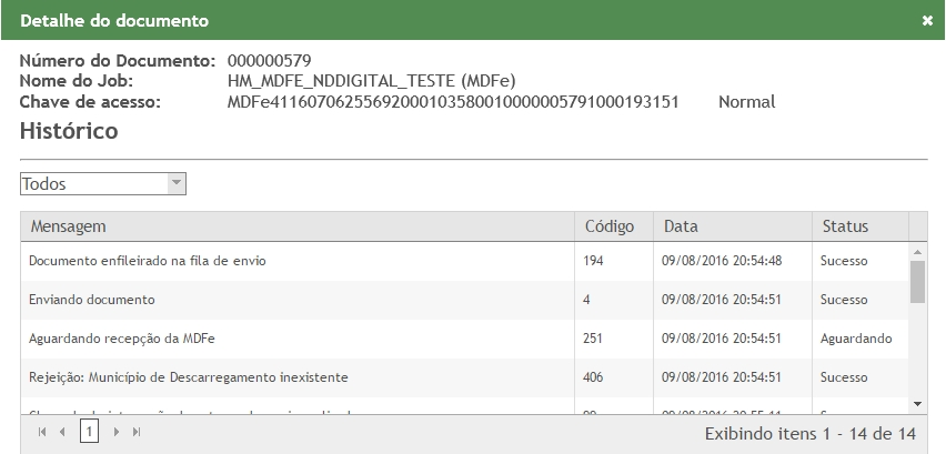 Foi emitido um MDF-e e a tag cMunDescarga foi preenchida com apenas '0000000' e na tag xMunDescarga foi informado um nome de cidade inexistente, assim rejeitando o documento