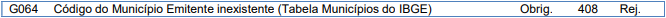 Essa rejeição ocorre quando o Município do Emitente está inexistente.