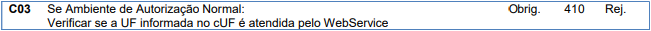 Rejeição 410: UF informada no campo cUF não é atendida pelo WebService (CT-e)