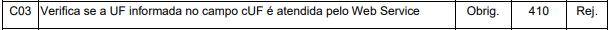 Rejeição 410: UF informada no campo cUF não é atendida pelo Web Service (NF-e)