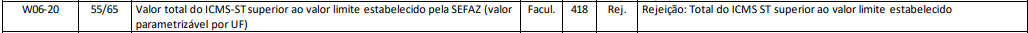 Essa rejeição ocorre quando o valor total do ICMS ST ultrapassa o valor limite estabelecido pela UF do emitente.