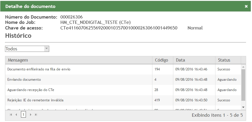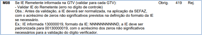 Quando o contribuinte emitir um documento fiscal e informar a Inscrição Estadual do remetente inválida, será retornado à rejeição.