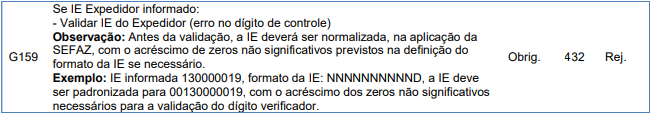 Essa rejeição ocorre quando a IE do expedidor está inválida.