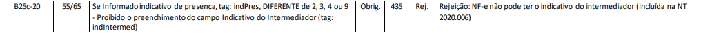 Verifique ao emitir a NF-e com indicador de presença igual a 0 ou 5 e for informado o indicativo do intermediador.
