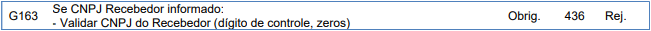 Essa rejeição ocorre quando o CNPJ do recebedor está inválido.