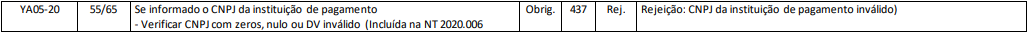 Rejeição 437: CNPJ da instituição de pagamento inválido (NF-e)