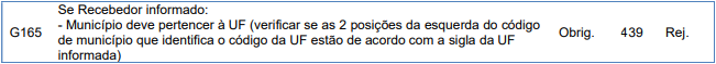 Essa rejeição ocorre quando o Código de Município difere da UF de localização do recebedor.