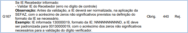 Essa rejeição ocorre quando a IE do recebedor está inválida.