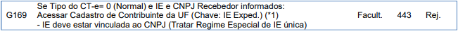 Verificar durante a emissão deste CT-e do tipo Normal, se o IE do recebedor está vinculada ao CNPJ.