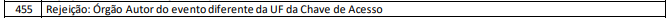 Rejeição 455: Órgão Autor do evento diferente da UF da Chave de Acesso (NF-e)