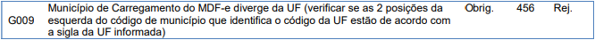 Rejeição 456: Código de Município diverge da UF de Carregamento do MDF-e (MDF-e)
