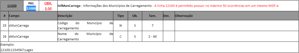 Para clientes que emitem o arquivo em TXT a tag UF é referente a linha 12000 no 1º campo e UFIni no 14 º campo. Já a tag infMunCarrega é referente a linha 12100.
