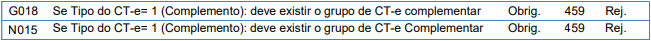 Rejeição 459: Grupo de CT-e complementar não informado para CT-e complementar (CT-e)