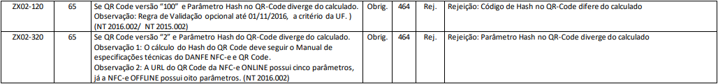Rejeição 464: Código de Hash no QR-Code difere do calculado (NFC-e)