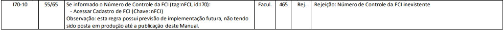 Rejeição 465: Número de Controle da FCI inexistente (NFC-e)