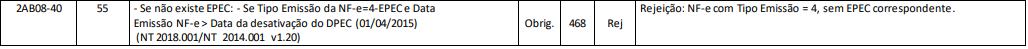 Rejeição 468: NF-e com Tipo Emissão = 4, sem EPEC correspondente (NF-e)