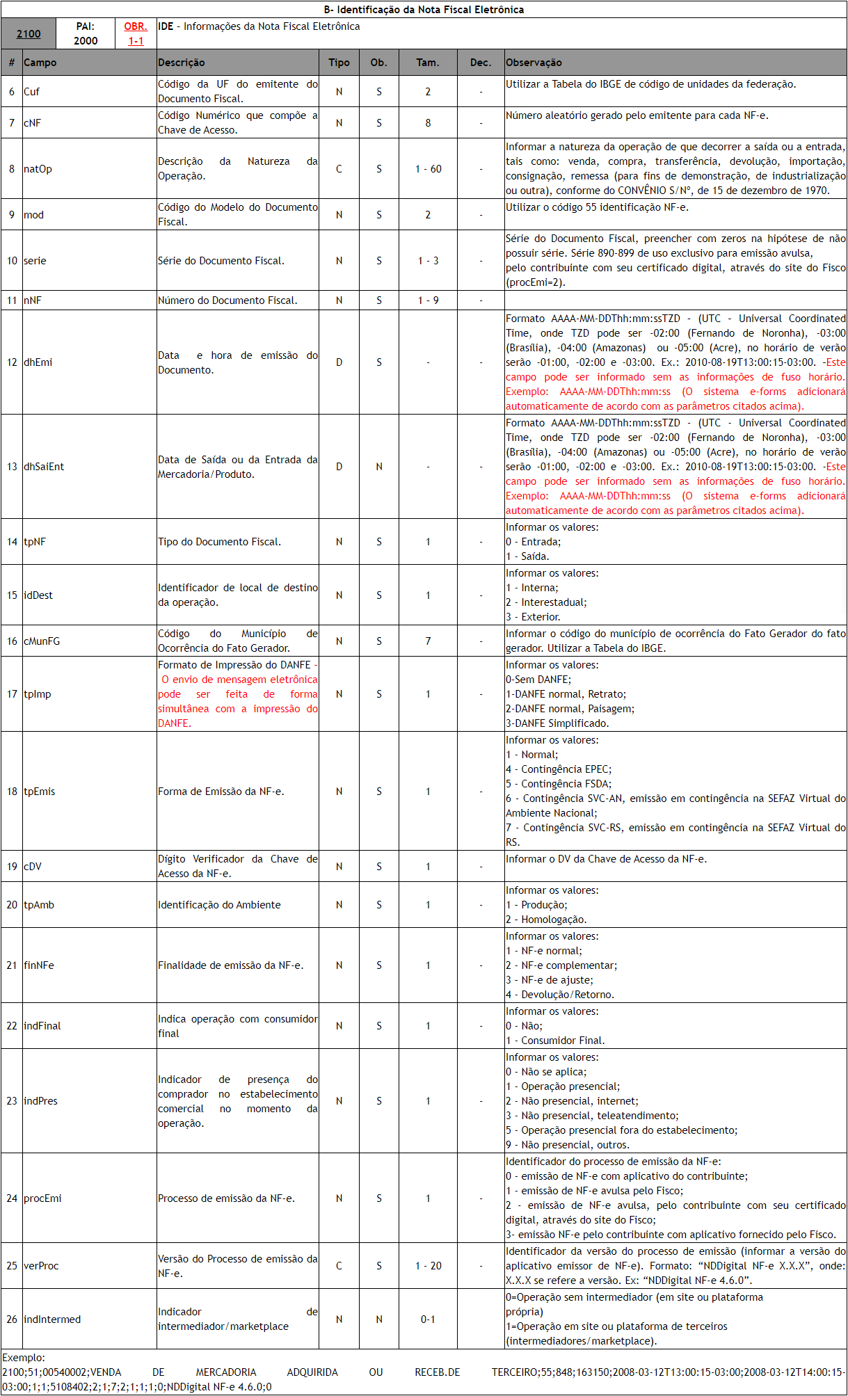 Fonte: ------> Anexo I - Leiaute e Regra de Validação - NF-e e NFC-e