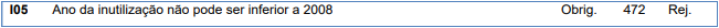 Essa rejeição ocorre quando o Ano de inutilização é inferior a 2008.