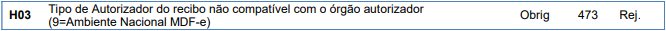 Rejeição 473: Tipo Autorizador do Recibo diverge do Órgão Autorizador (MDF-e)