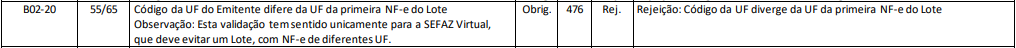 Rejeição 476: Código da UF diverge da UF da primeira NF-e do Lote (NF-e)