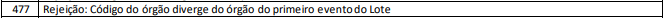 Essa rejeição ocorre quando o Código do órgão diverge do órgão do primeiro evento do Lote.