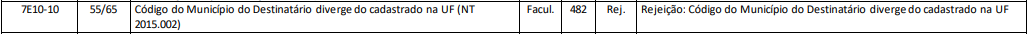 Rejeição 482: Código Município do Destinatário diverge do cadastrado na UF (NF-e)