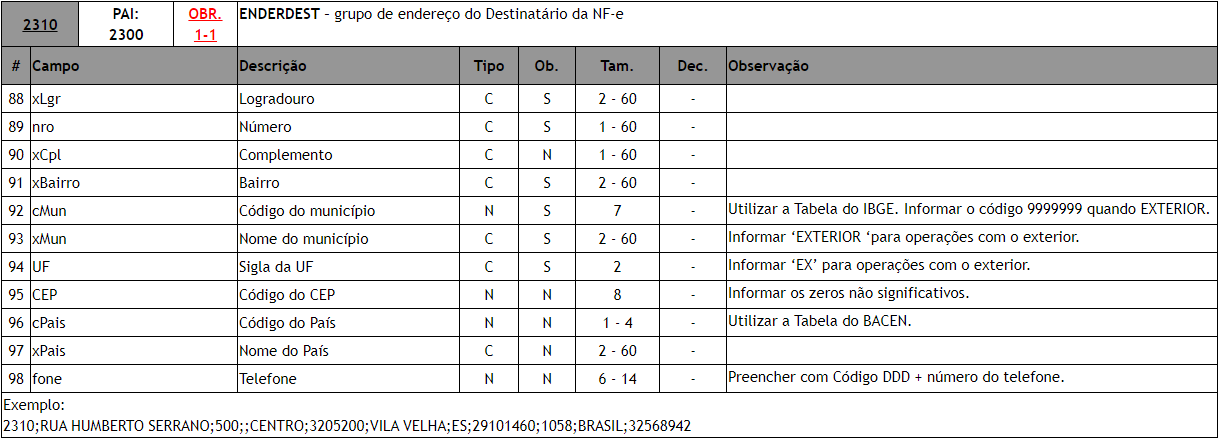 Para clientes que emitem o arquivo em TXT o campo ENDERDEST é referente a linha 2310, o campo cMun é referente a 5º linha e o campo UF é referente a 7º linha, conforme podemos visualizar abaixo nos manuais da NDD Tech.