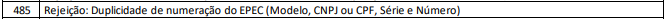 Rejeição 485: Duplicidade de numeração do EPEC (Modelo, CNPJ, Serie e Numero) (NF-e)