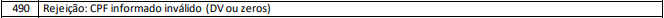 Rejeição 490: CPF informado inválido (DV ou zeros) (NF-e)