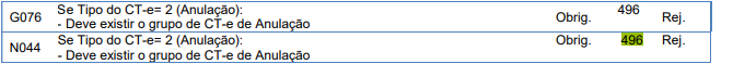 Rejeição 496: Grupo CT-e de Anulação não informado para o CT-e de Anulação (CT-e)