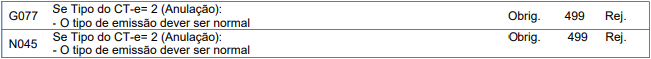 Rejeição 499: CT-e de anulação deve ter tipo de emissão = normal (CT-e)