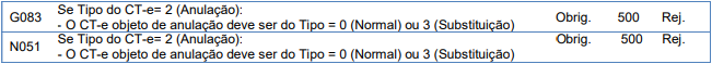 Rejeição 500: CT-e objeto da anulação deve ter Tipo = 0 (normal) ou 3 (Substituição) (CT-e)