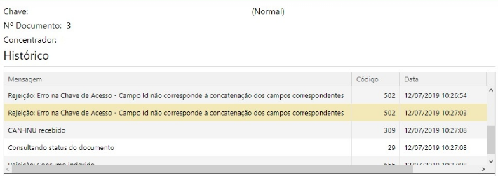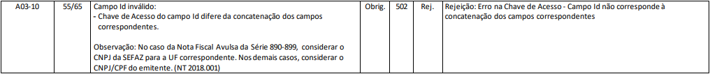 Rejeição 502: Erro na Chave de Acesso - Campo ID não corresponde à concatenação dos campos correspondentes (NFC-e)